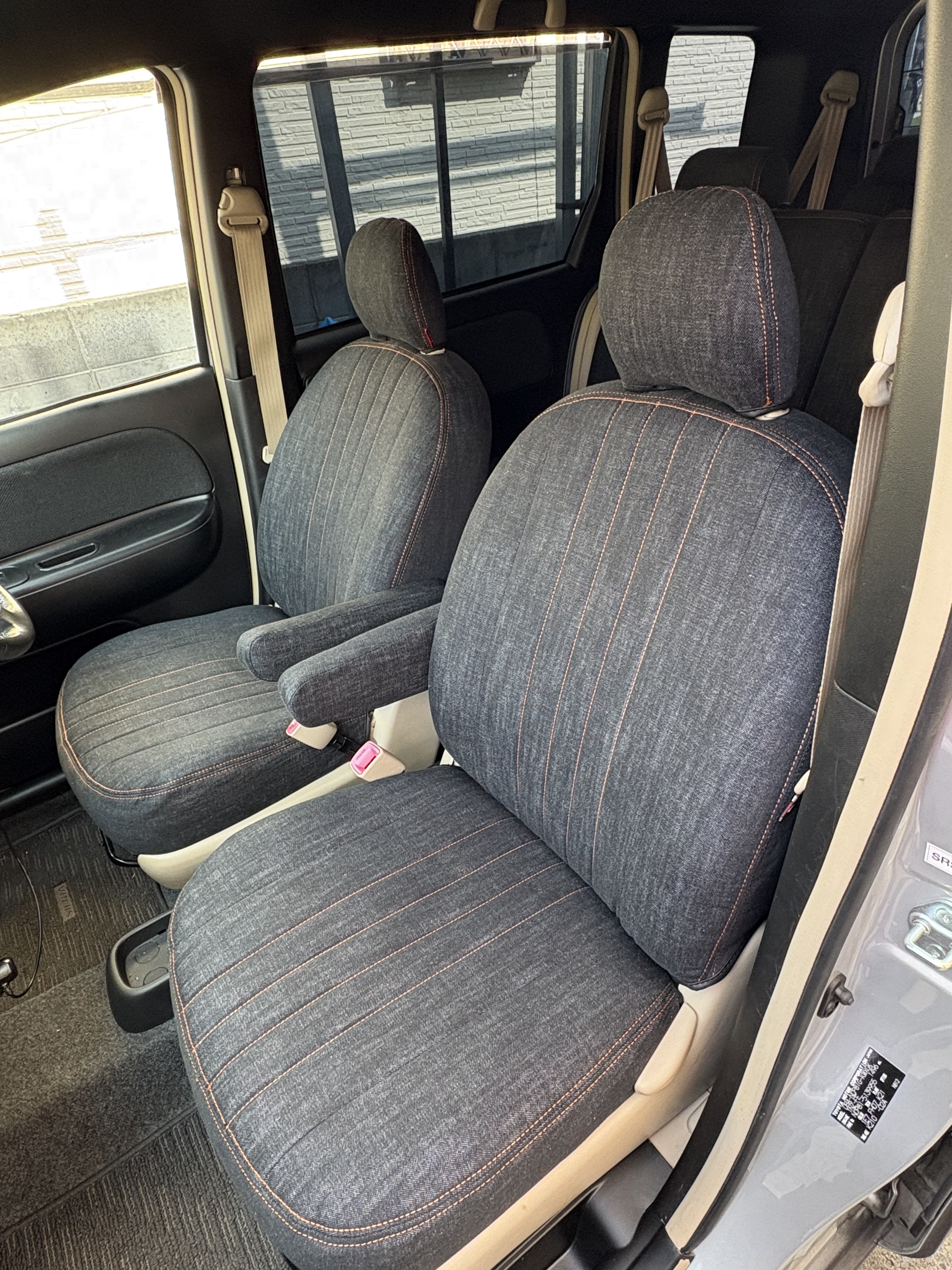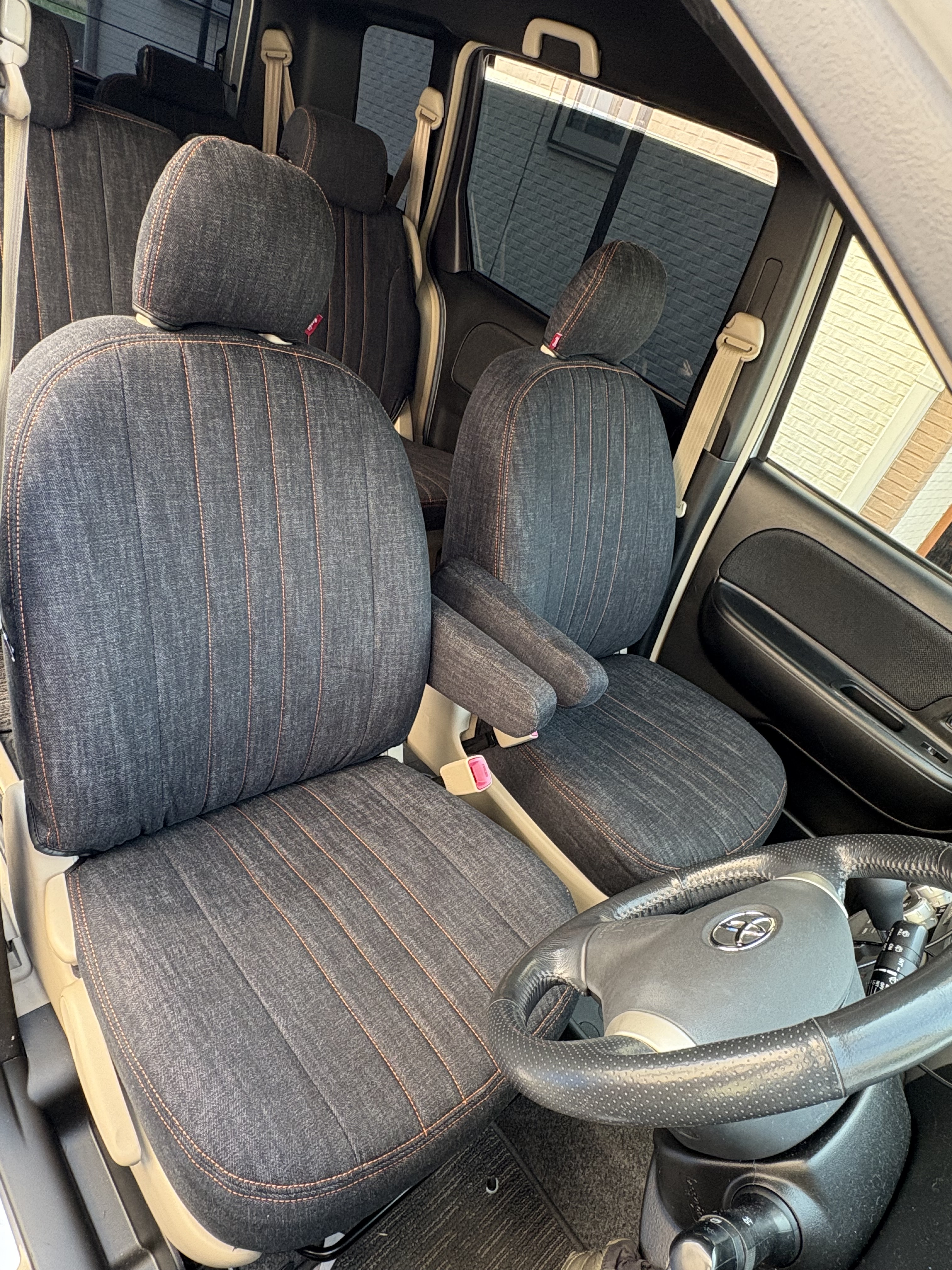 事故に巻き込まれ、予定外の買い替えで希望の内装色ではなかったので、張り替えシートを探していました。 ブラックデニムにオレンジのステッチでシートが引き締まり、カッコかわいく仕上がり、とても満足しています。 周りからの評判も良く、車種専用設計のシートカバーにして良かったです。 気に入りすぎて装着写真、5枚で収まりきりません。