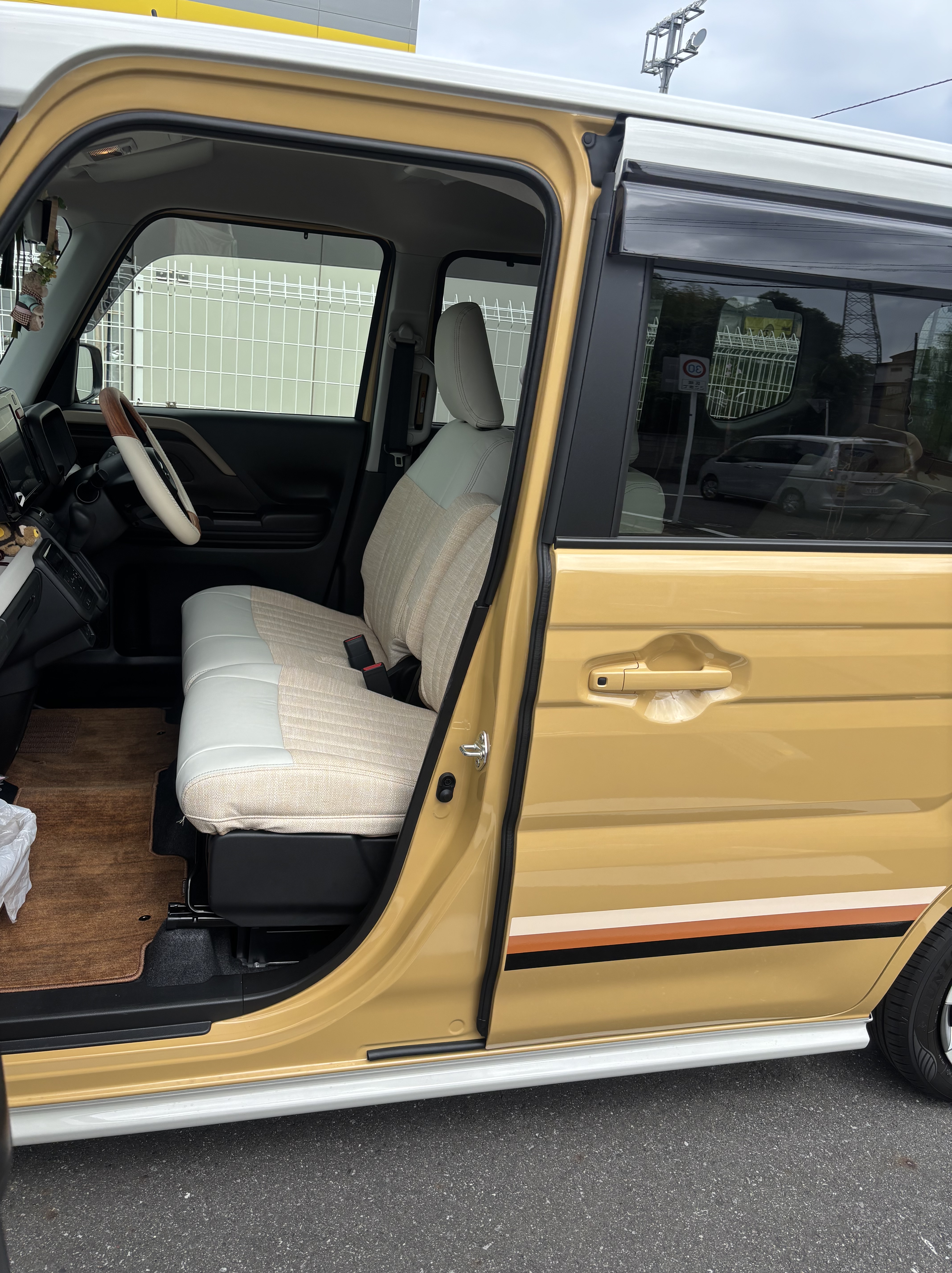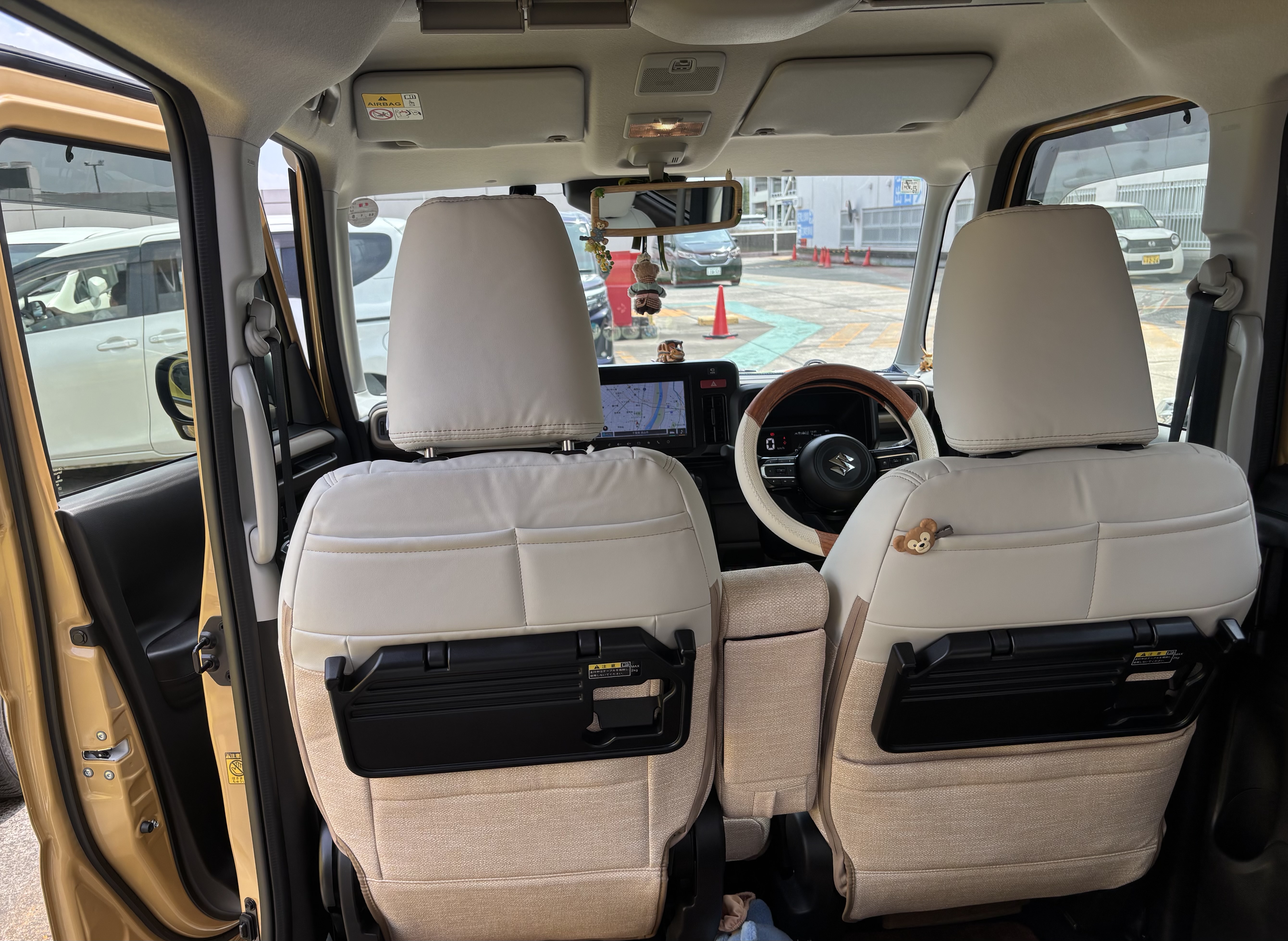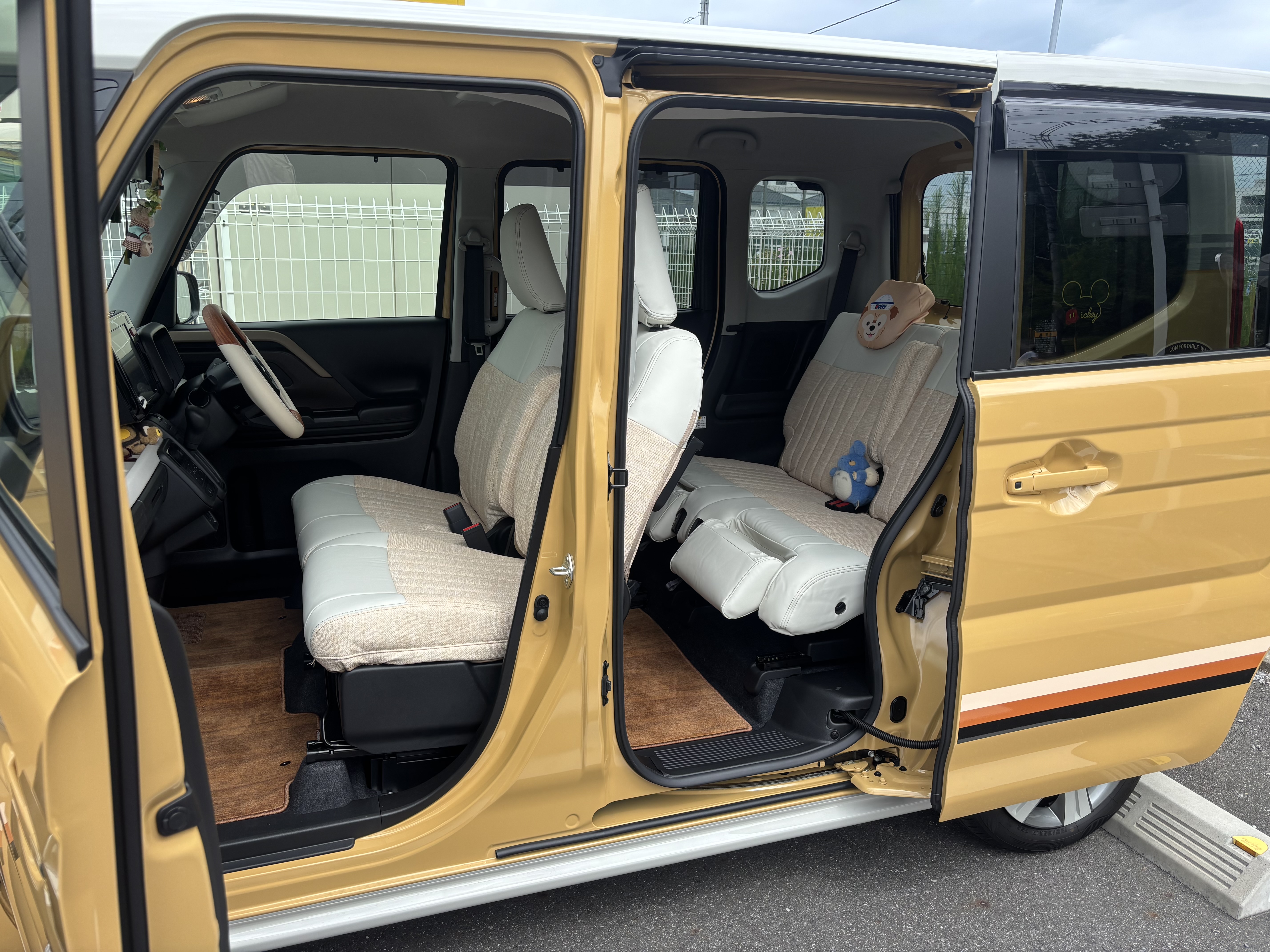 とても可愛いくて大満足。質感、手触り、色合いも良く感激です。ただ後部座席下のフットカバーは汚れ安いのでアイボリーじゃなければと思いました。 とても素敵な車内になり自分好みの空間作りが楽しくなりました。