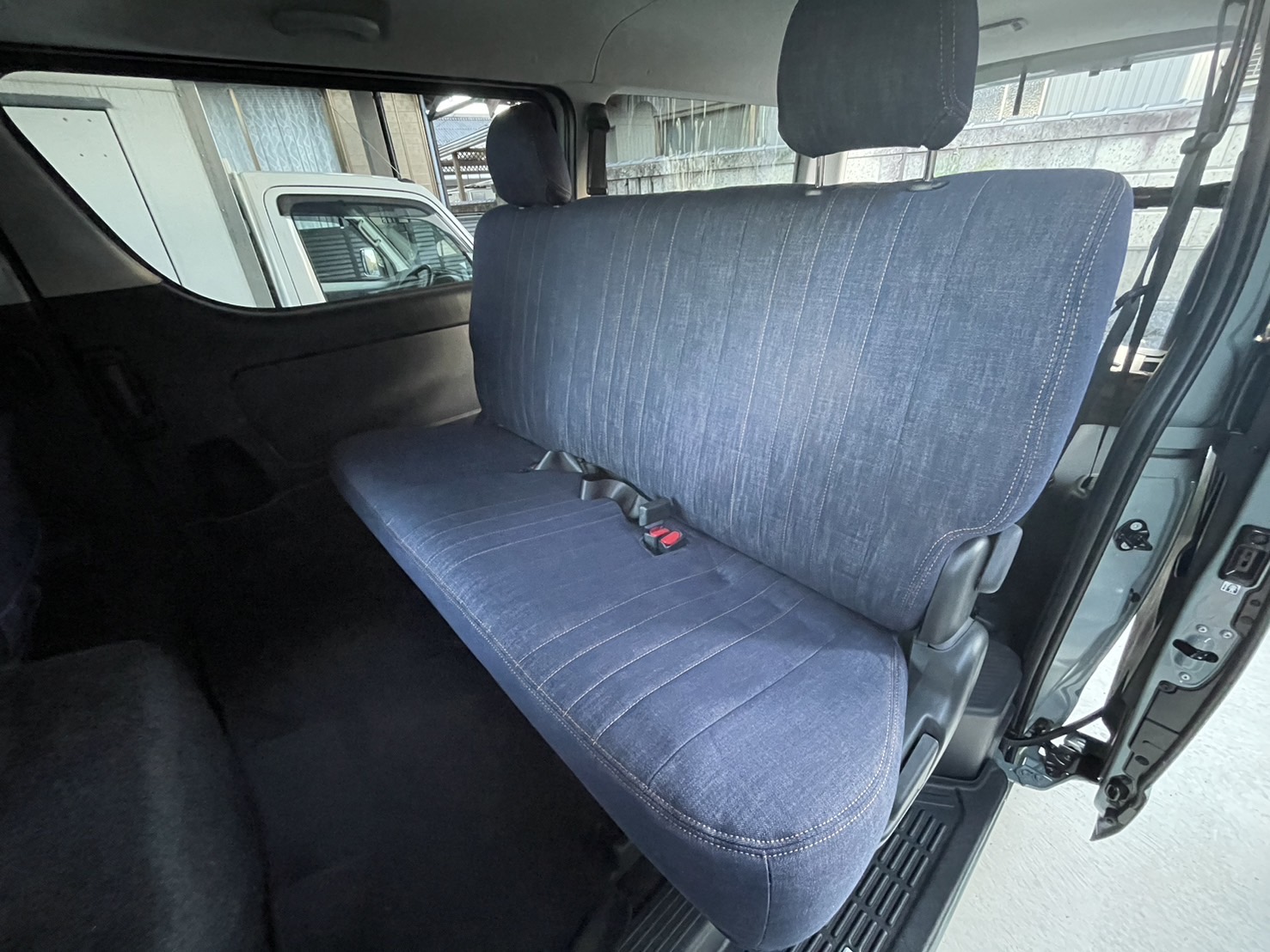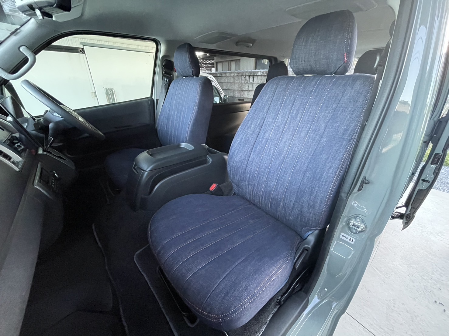 かわいい車のシートカバーなら Sandii サンディ / 【装着写真】ハイエースバン Sandiiデニムロール シートカバー [品番:T0026-09]